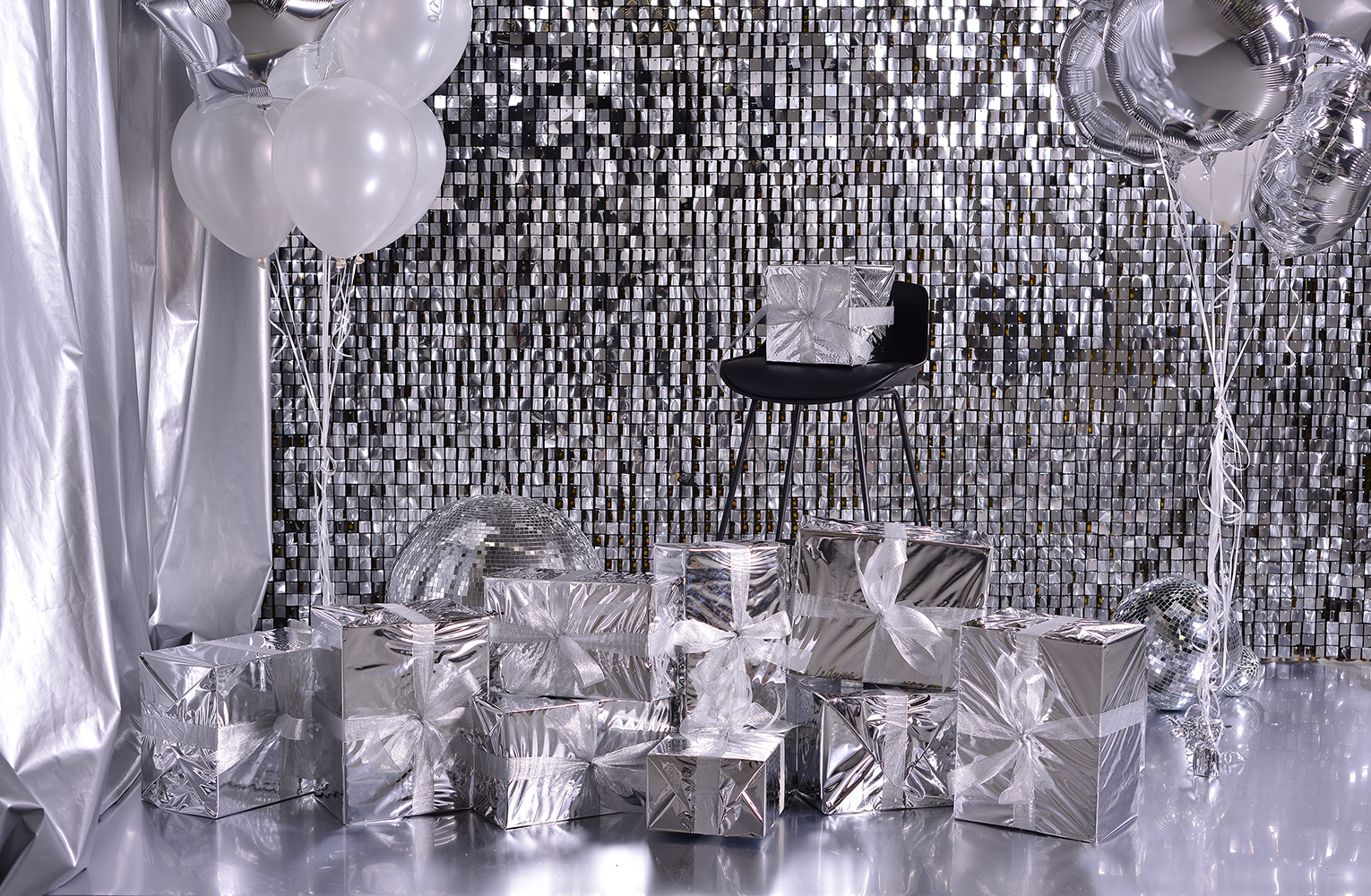 В зале Джоуль вас ждут большие серебряные шары, серебристая стена, пол, выложенный зеркальными плитами!